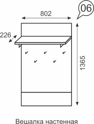 Наполнение: 5 крючков + полка для головных уборов