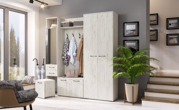 Пенал с выдвижным пуфом на колёсиках "ИТАЛИЯ" П1Я-400 одностворчатый с 4-мя полками и ящиком на роликовых направляющих. Пуф предназначен для хранения вещей, имеет откидную крышку с мягким сиденьем. Обработка зеркала "фацет" по периметру.