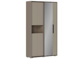 Разделение на секции: Одна часть прихожей включает две одинаковые секции с полками, закрытые створками. В каждой секции предусмотрено по две съёмные полки, что позволяет настраивать пространство под ваши нужды. Открывание створок осуществляется за выступ, что делает использование шкафа более удобным.